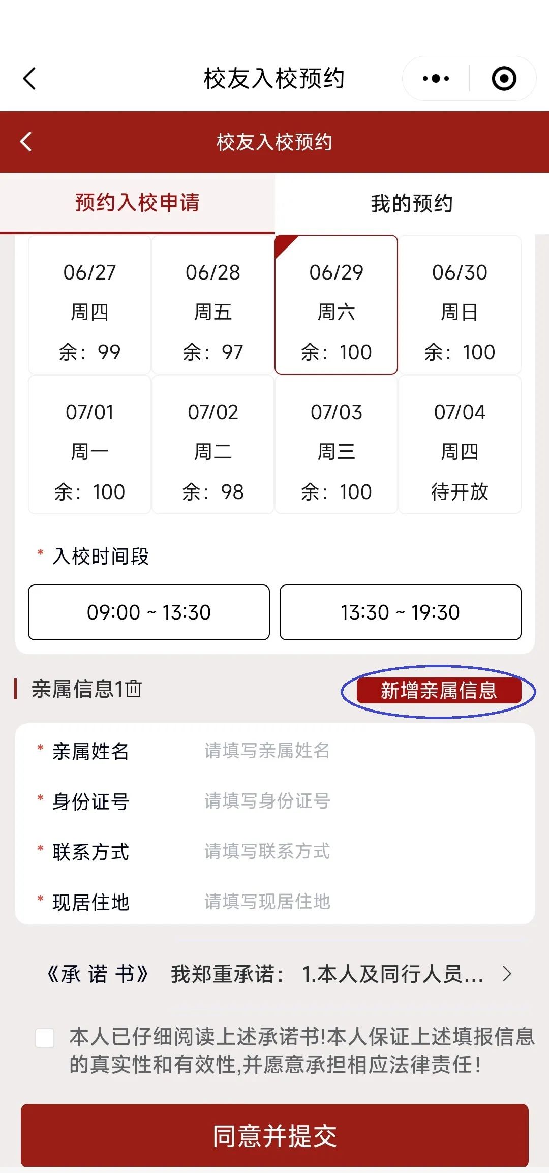 3.如申请同行亲友入校,校友本人须一同入校,否则校友工作办公室有权取消校友本人的预约权限。