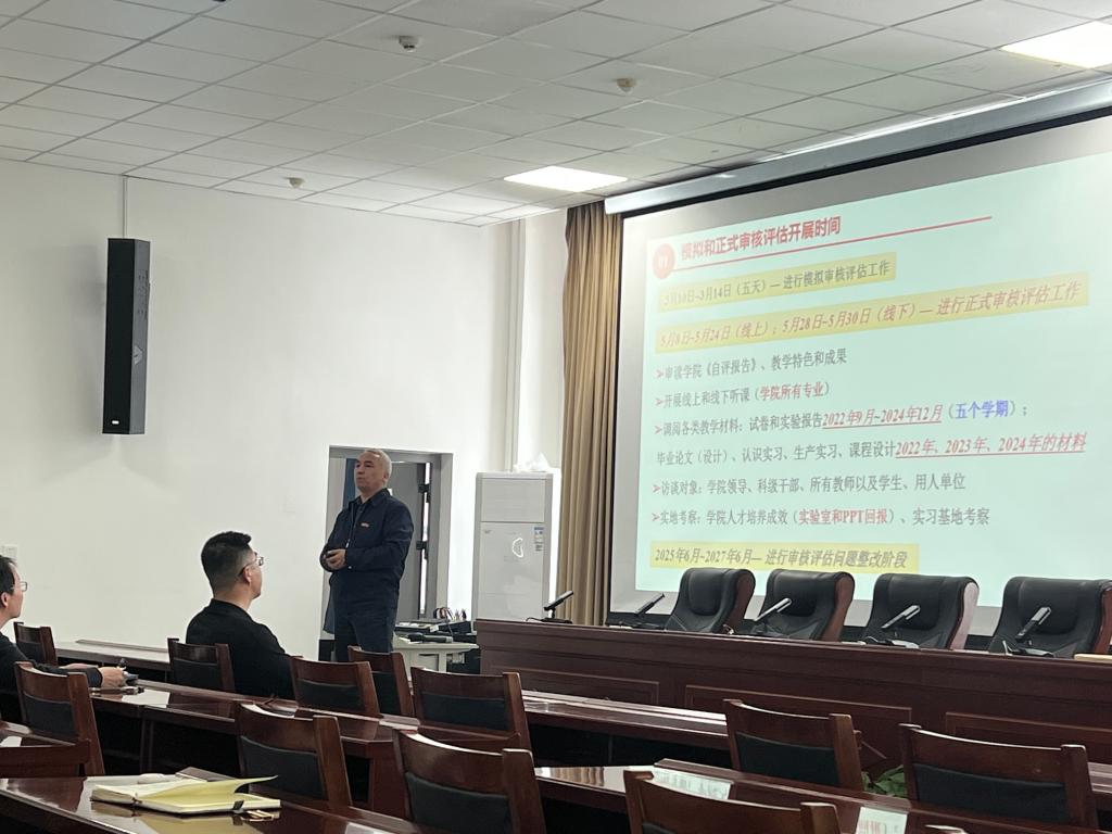 自2025年3月12日开始,为了帮助我院老师逐一落实解决在模拟审核评估开展以来出现的问题,切实做到以评促建、以评促改,化工学院将在正式迎接审核评估前对全院老师进行四次培训,帮助老师们继续完善教学资料和教学环节细节,3月12日下午在化工学院四楼会议室进行第一次培训,学院领导和全体教职工参加会议。